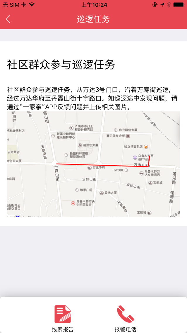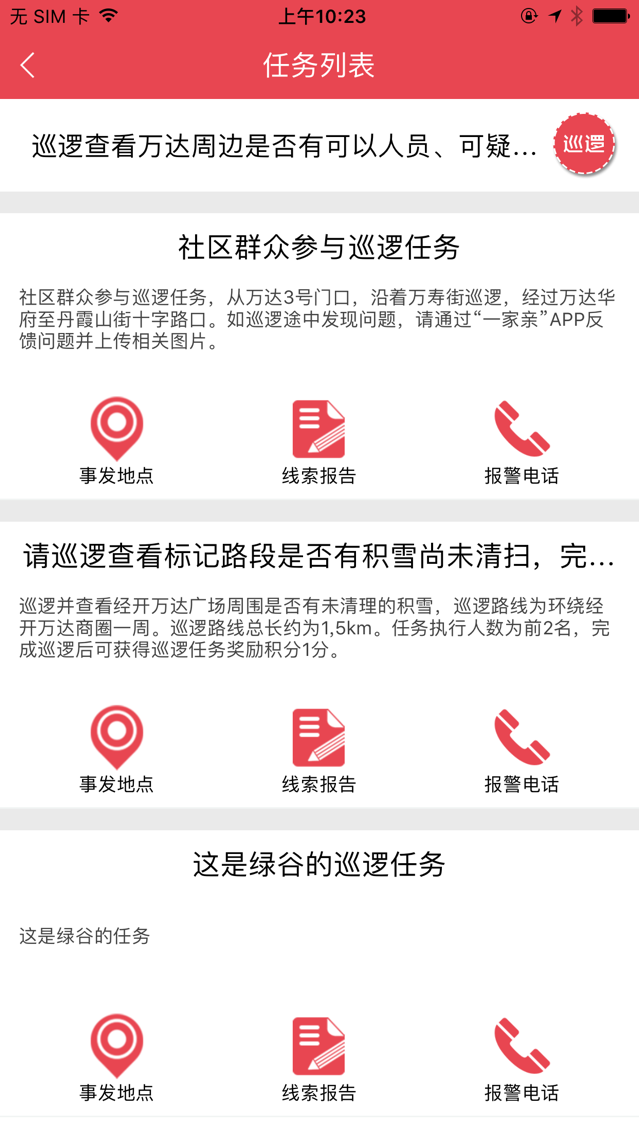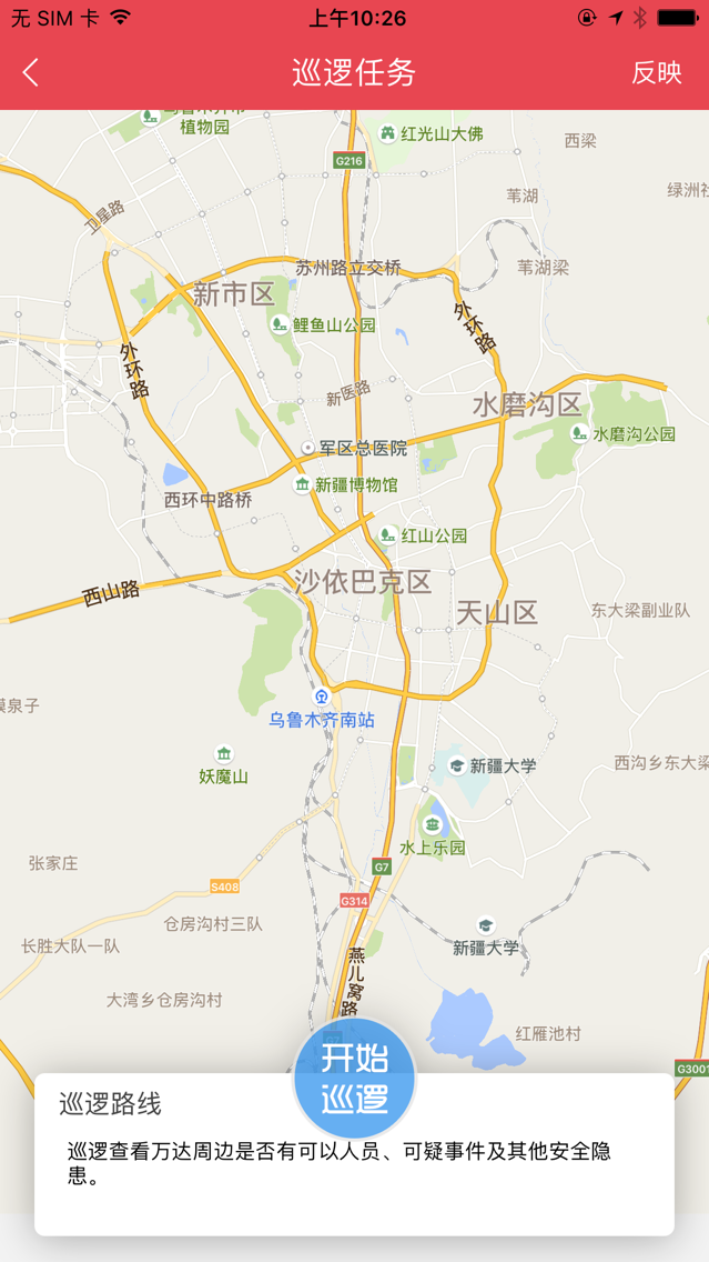 从主页点击自助巡逻,进入巡逻页面,可开始巡逻。点击任务巡逻可进入任务巡逻页面。