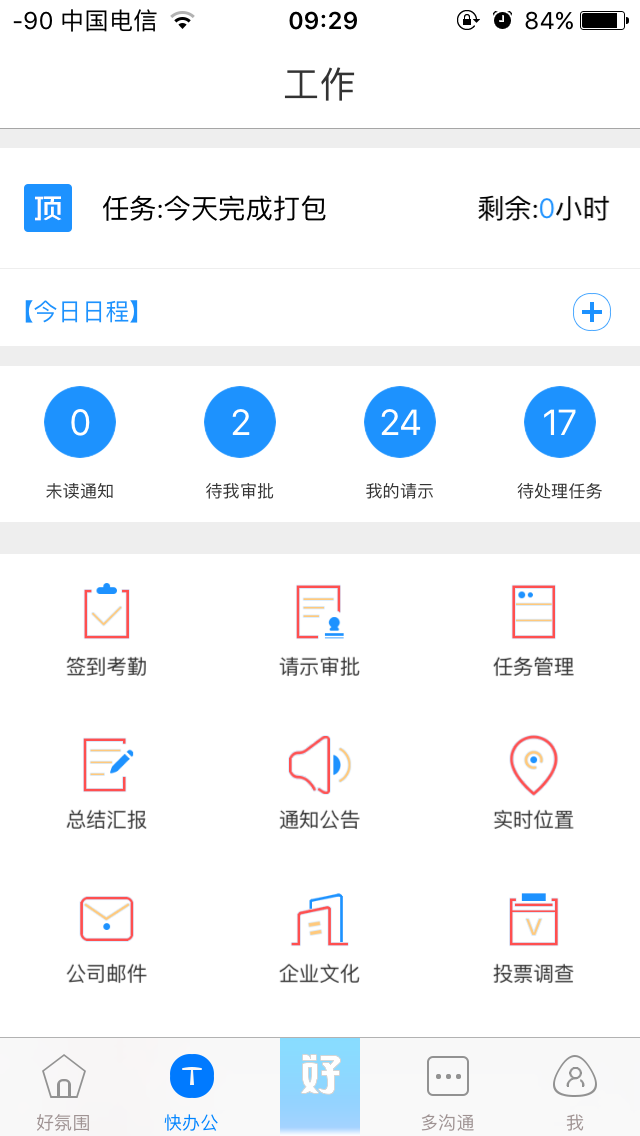 查看自己现有的任务和创建新的任务,并可就此任务创建相关讨论组,还可添加子任务进行分配以及设置到期时间等。