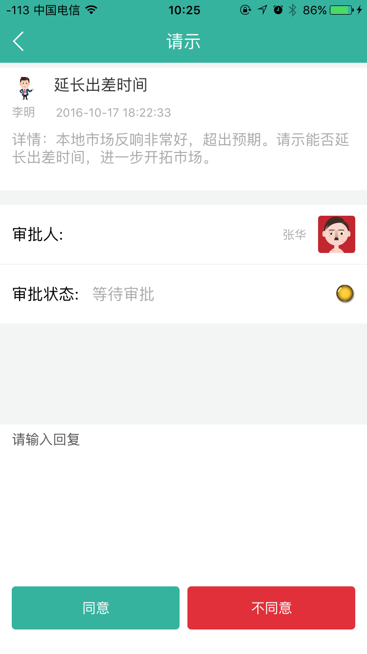 查看以往的全部请示,并创建新的请示发送给上级领导