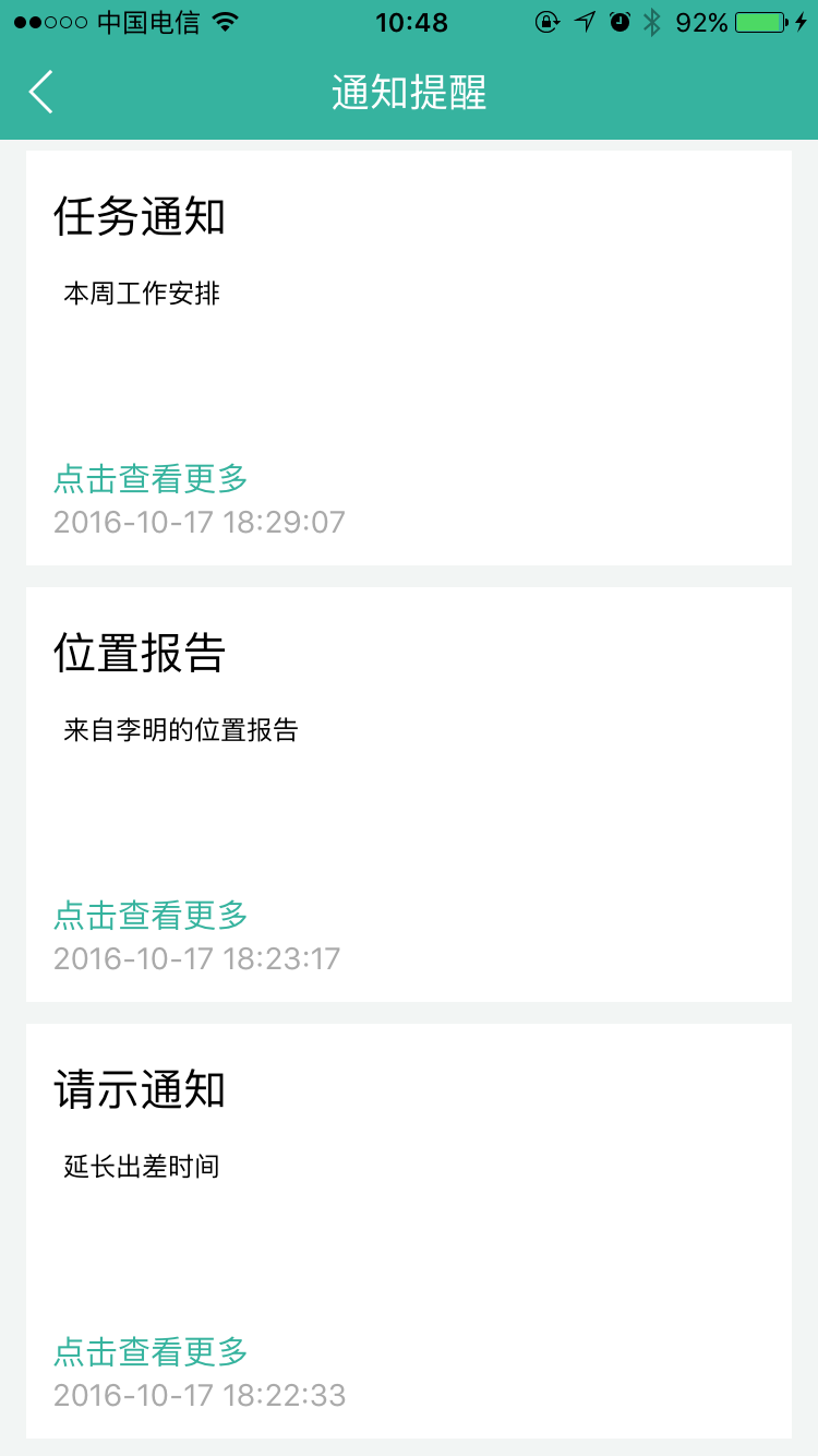 提交位置报告成功后,报告对象即可在通知号中查看信息: